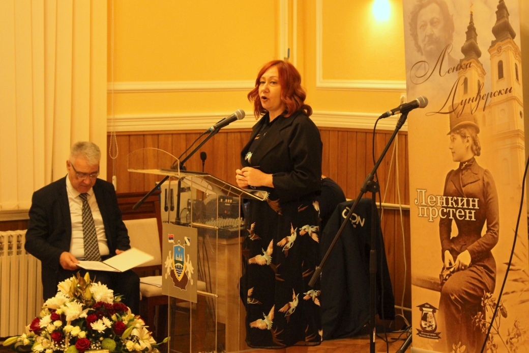 "Добродошли на двадесети, јубиларни 'Ленкин прстен', тренутак у години у коме додељујемо истоимену награду, а њеног добитника уврштавамо у друштво најбољих, уважених лирских писаца. Како ми то у нашој установи волимо метафорички да кажемо, додајемо још један дијамант на прстен наше Ленке. Од када је награда установљена наша је идеја да заједно славимо љубав и уметност и да чувамо сећање на Ленку и Лазу, а тако је и сада. Зато ми је драго што видим да и данас у публици седи неко од потомака славне србобранске породице Дунђерски, и што с нама деле ове лепе тренутке", рекла је Поповић.