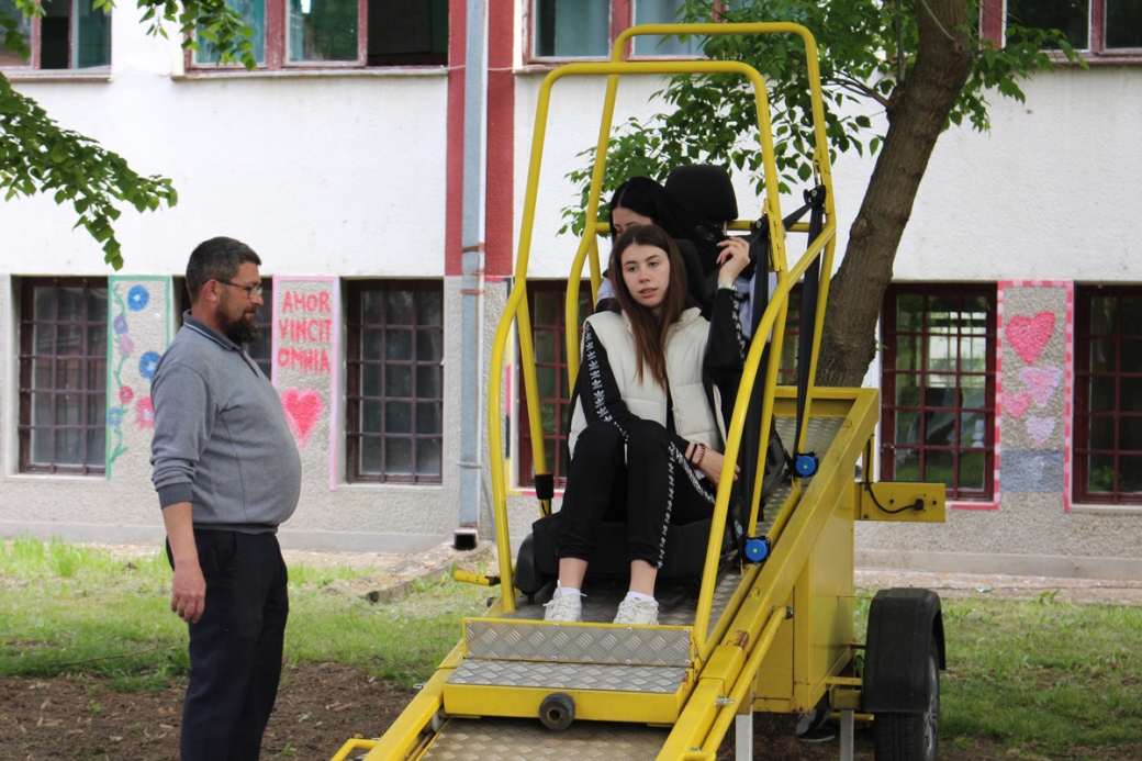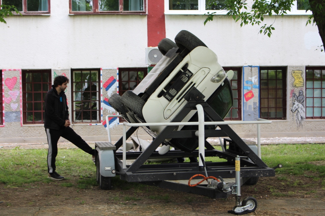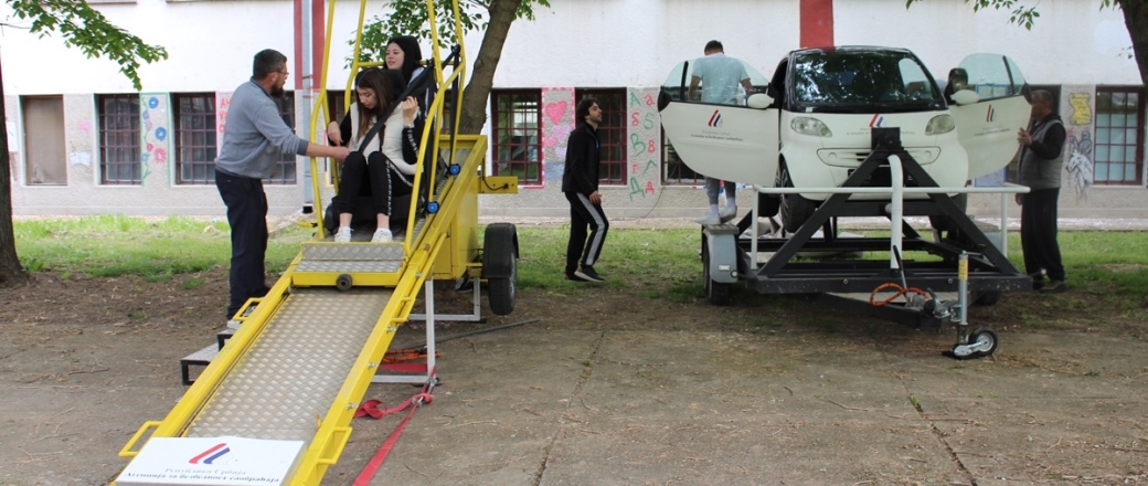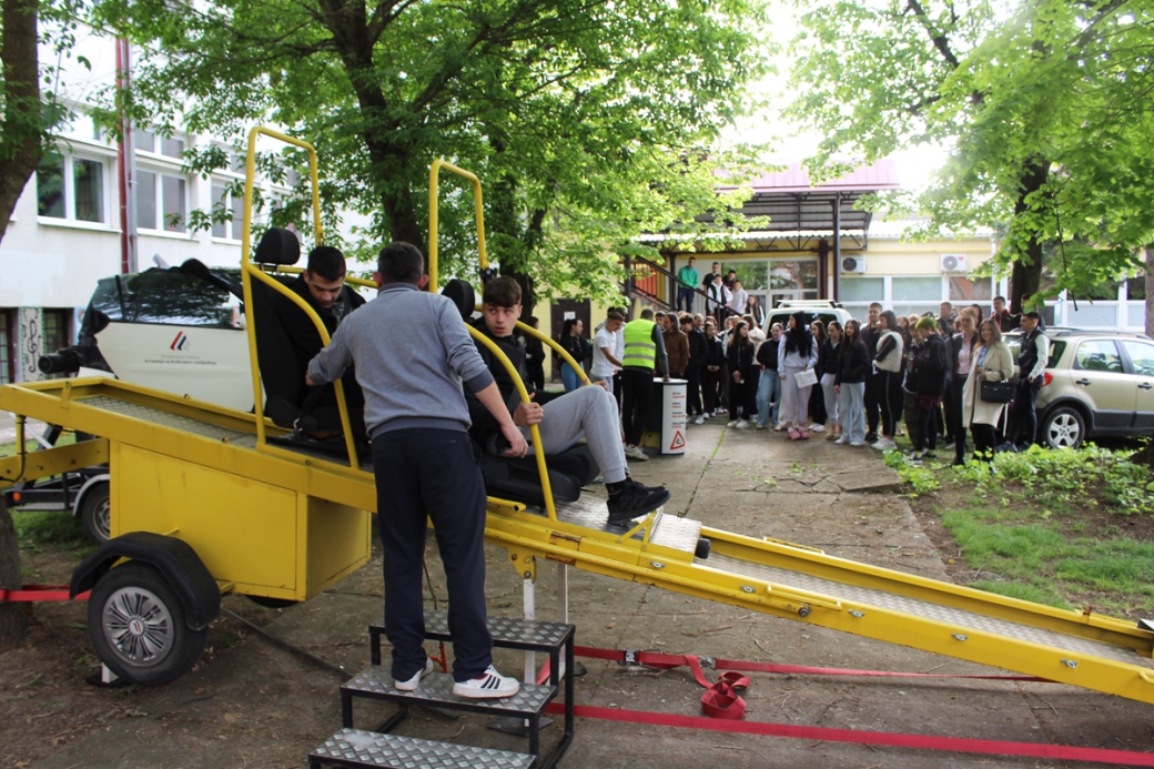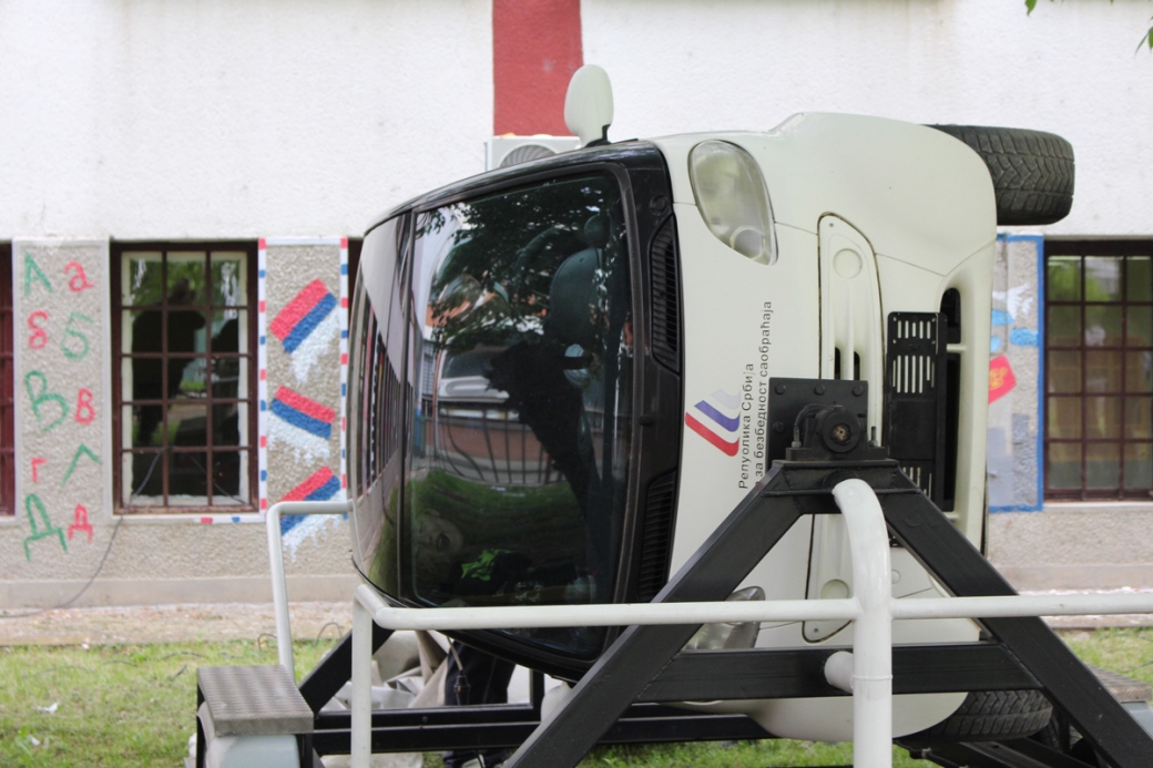 Пре трибине у Позориштанцу, у дворишту Гимназије "Светозар Милетић", била су постављена два симулатора који у контролисаним условима приказује важност везивања појаса код саобраћајних незгода; ученици су имали прилику да осете снагу чеоног судара при кретању од само 6 км на час, као и колико појас може бити од помоћи у тренутку превртања возила.
